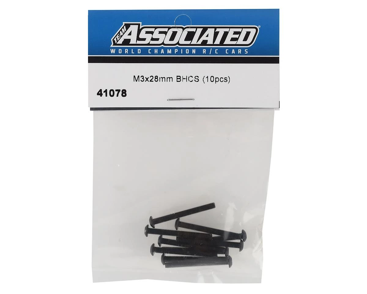 This is an Element RC replacement set of M3x28mm Button Head Screws. This pack contains ten screws that are compatible with 1/10 scale RC Kits.