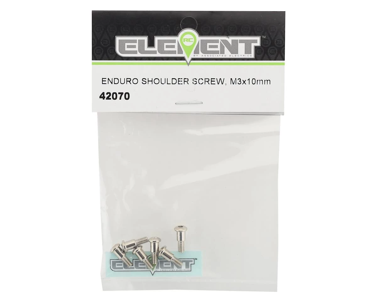 This is a pack of six replacement Element RC Enduro 3x10mm Shoulder Screws, intended for use with the Element Enduro. These are the screws used to secure the c-hubs to the axle housing.