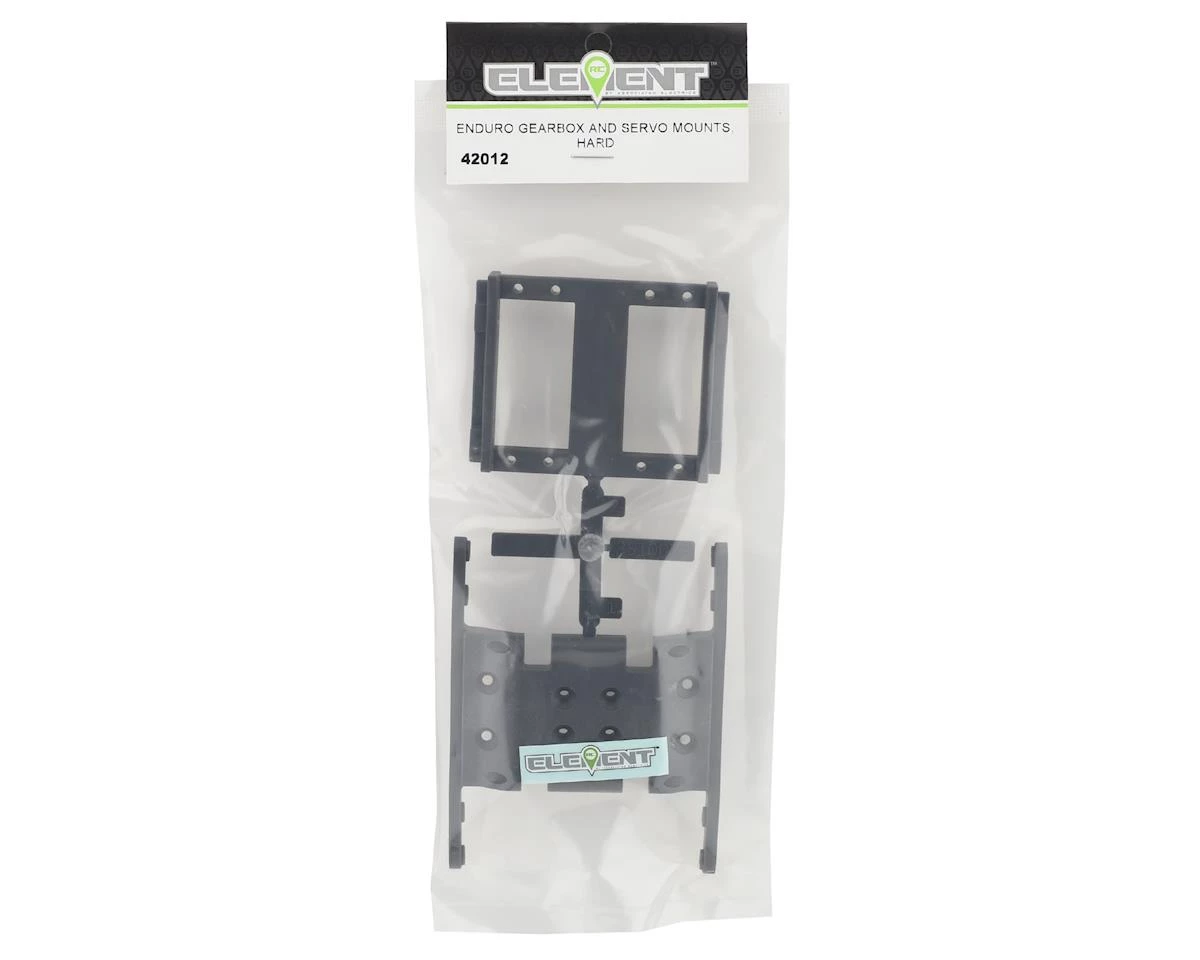 This is a pack of Element RC Hard Gearbox & Servo Mount, intended for use with the Element Enduro. These optional mounts have been molded out of hard plastic, ideal for warm or hot conditions to minimize flex.