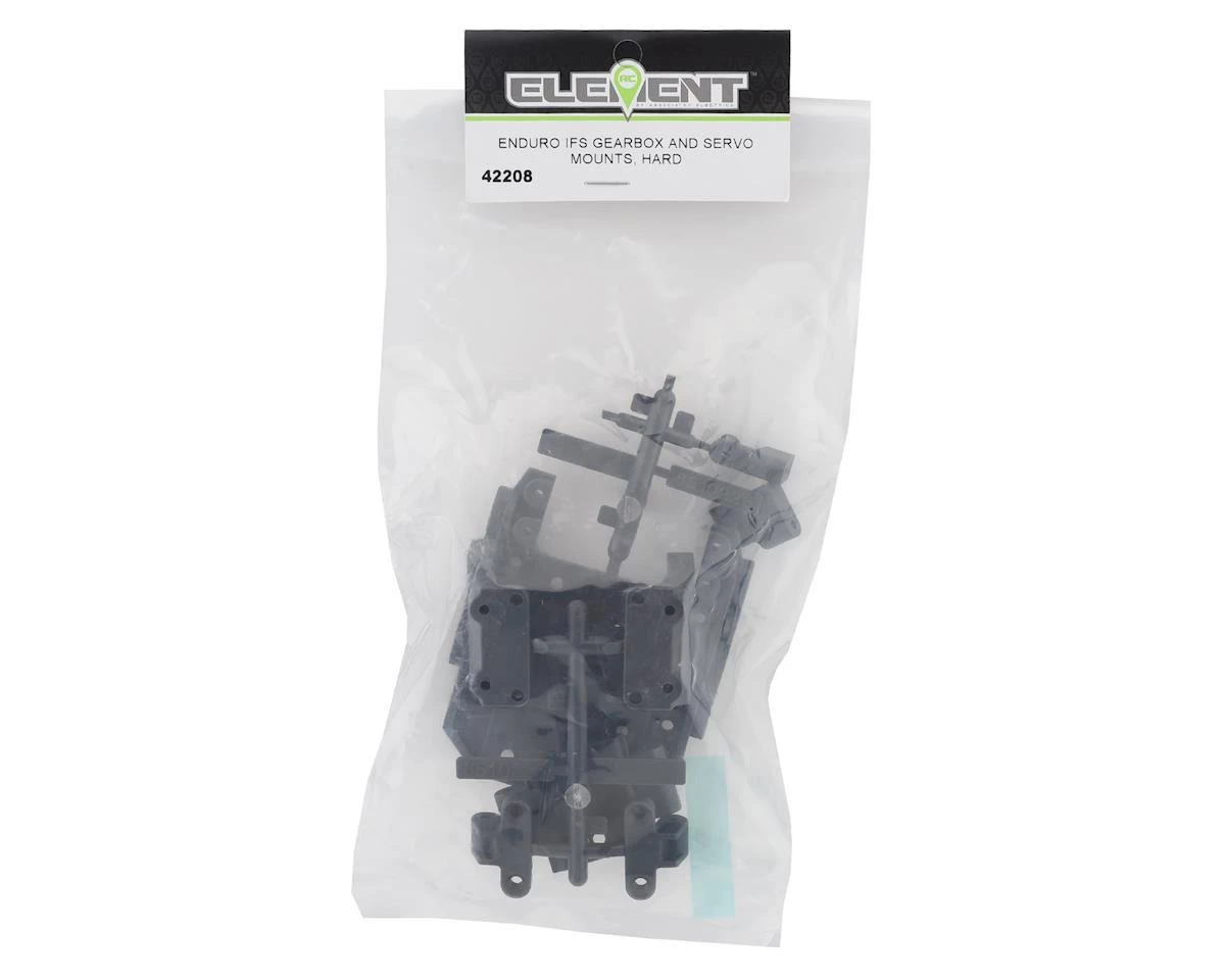 This is an optional Team Associated Enduro IFS Hard Gearbox and Servo Mounts Set, intended for use with the Element RC Enduro Rock Crawlers. These parts are molded harder than the stock part and are suited to dry and hot climates.