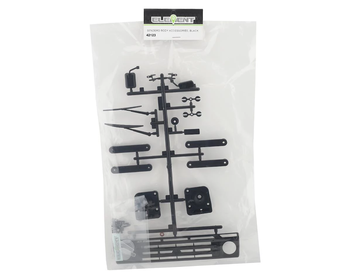 This is a pack of replacement Element RC Enduro Sendero Body Accessories, intended for use with the Element Enduro. Package includes black body accessories.