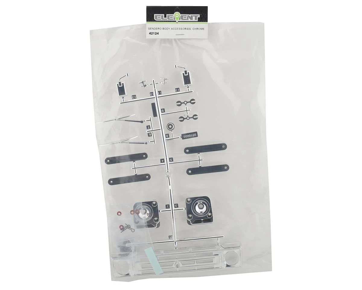 This is a pack of Element RC Enduro Sendero Body Accessories, intended for use with the Element Enduro. Package includes chrome body accessories.