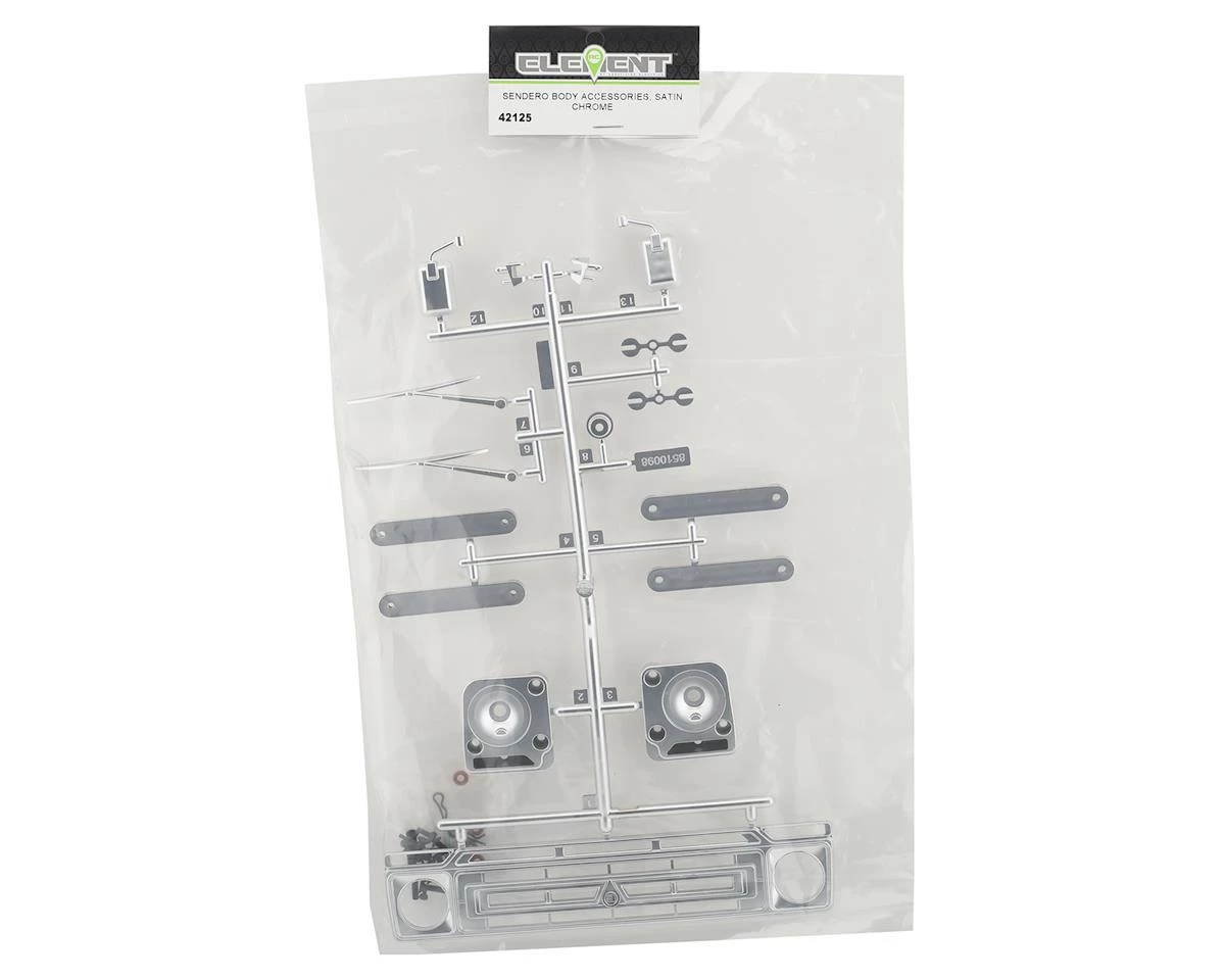 This is a pack of Element RC Enduro Sendero Body Accessories, intended for use with the Element Enduro. Package includes satin chrome body accessories.