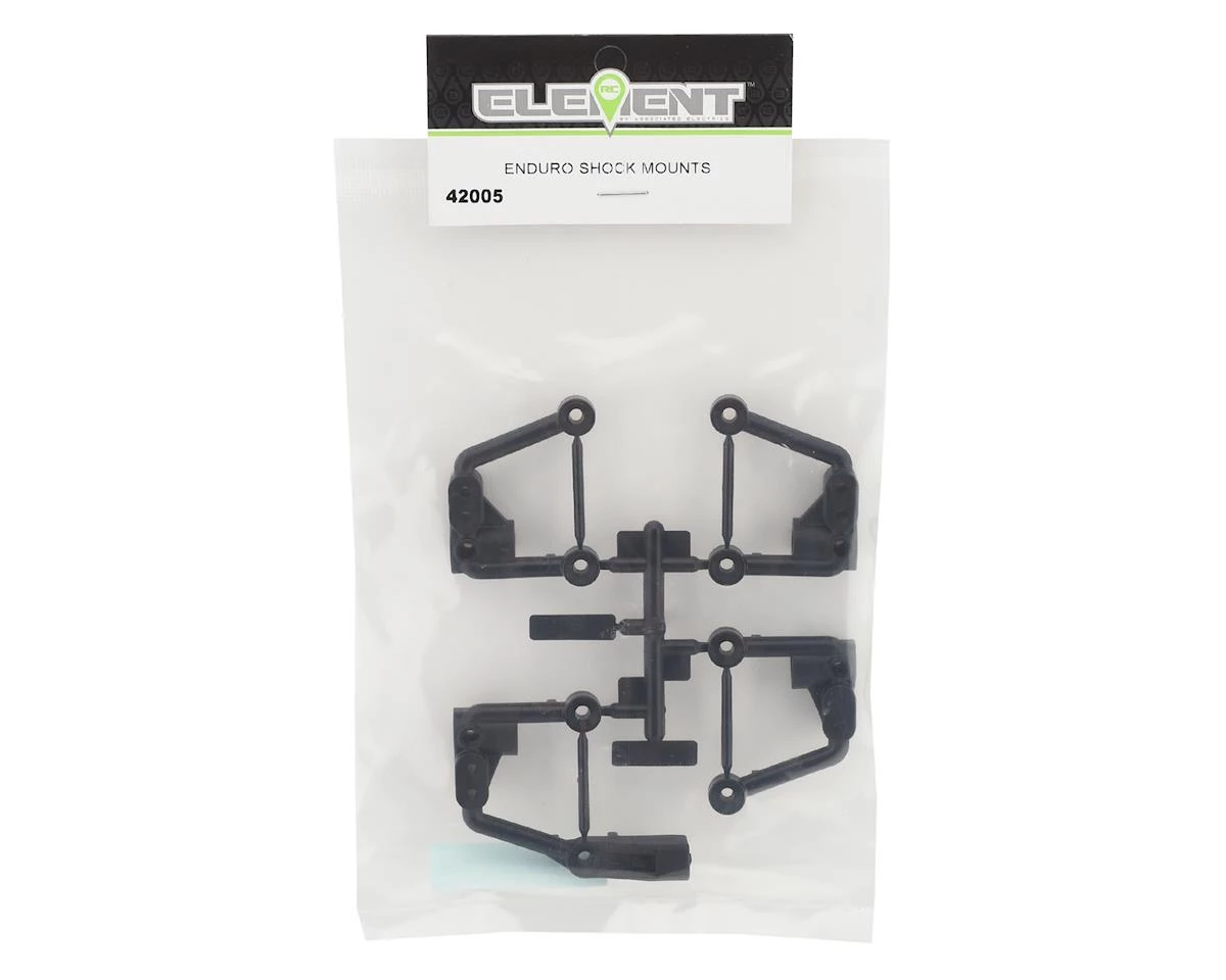 This is a pack of four Element RC Shock Mounts, intended for use with the Element Enduro. Package includes two replacement rear mounts and two replacement front mounts.