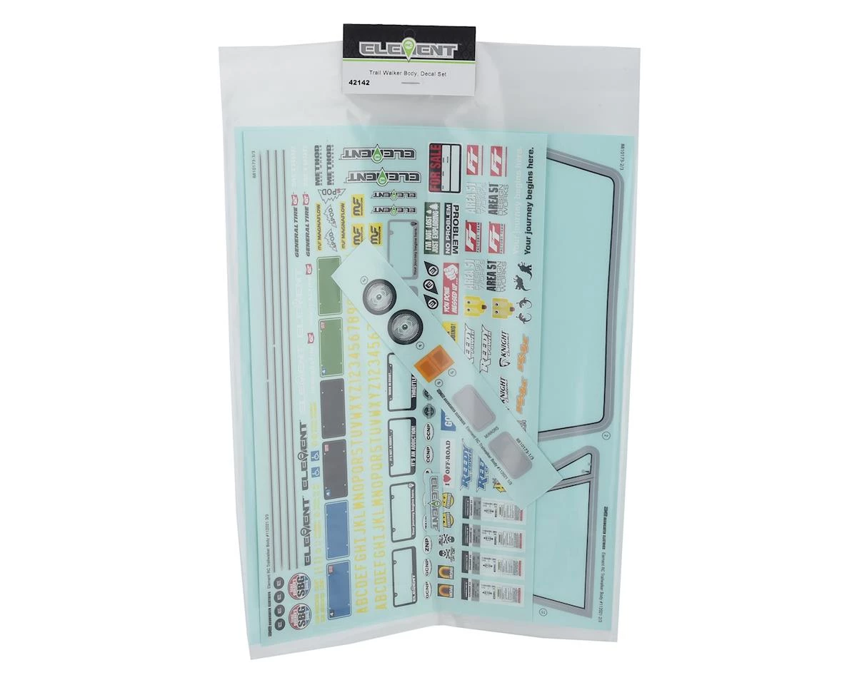 Element RC Trailwalker Body Decals. These decals are a replacement for the Enduro Trailwalker 1/10 Trail Truck, but can also be used to personalize any custom project.